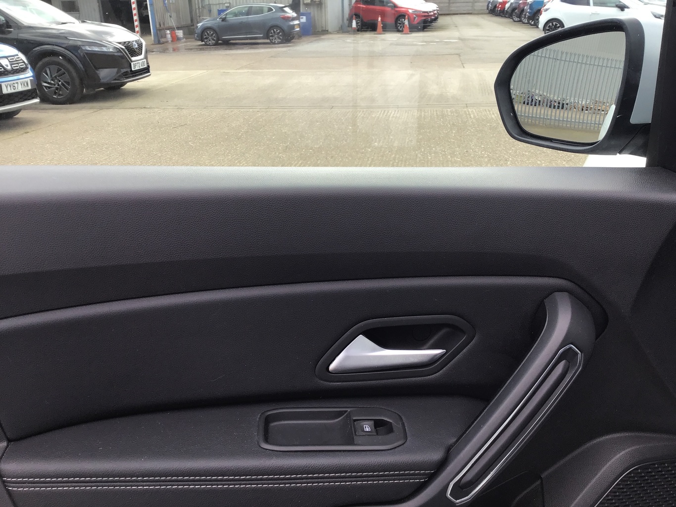 - Dark metal door mirrors in grey