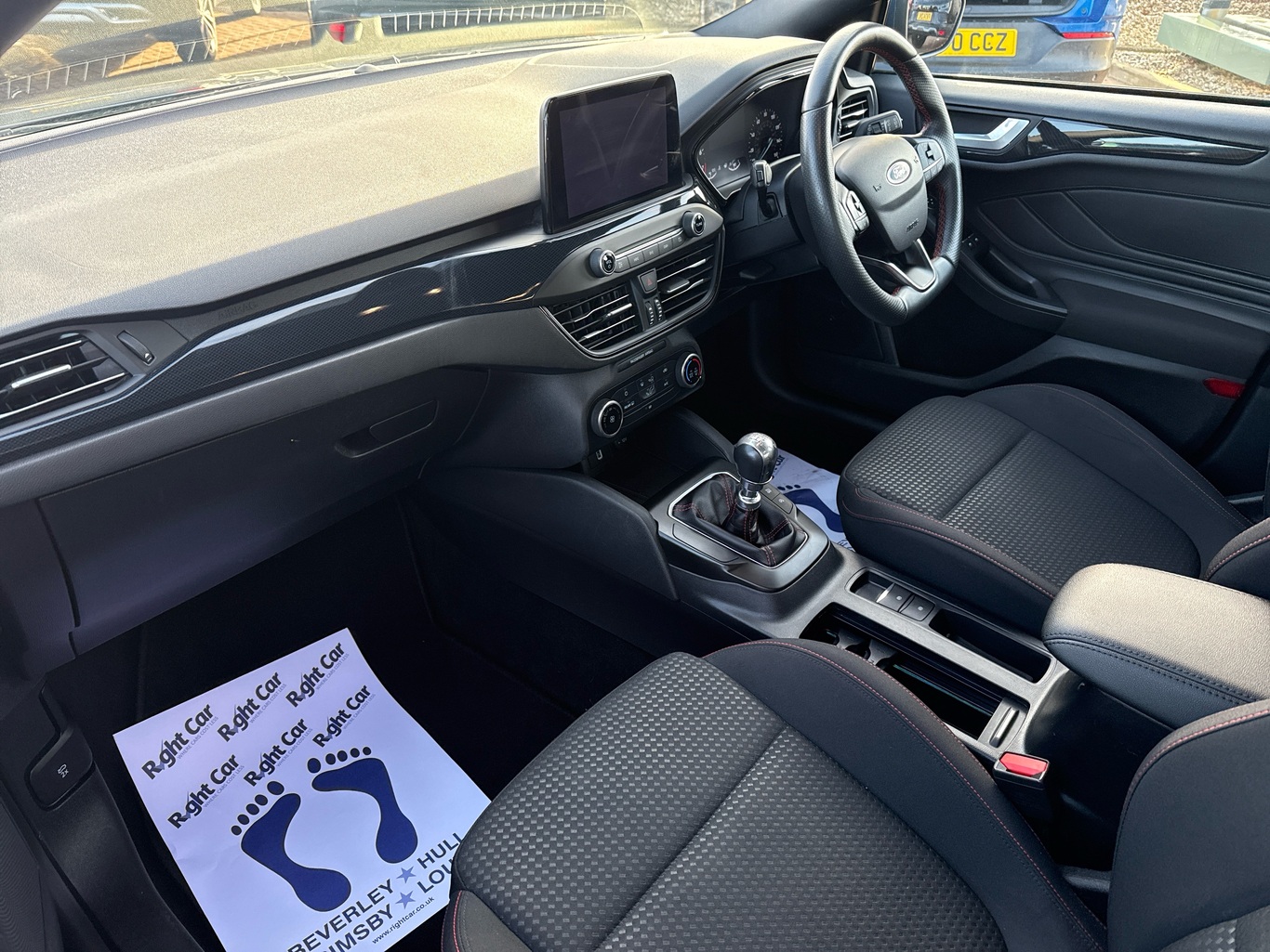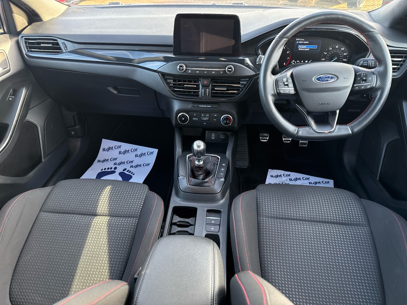 - Red stitching on steering wheel