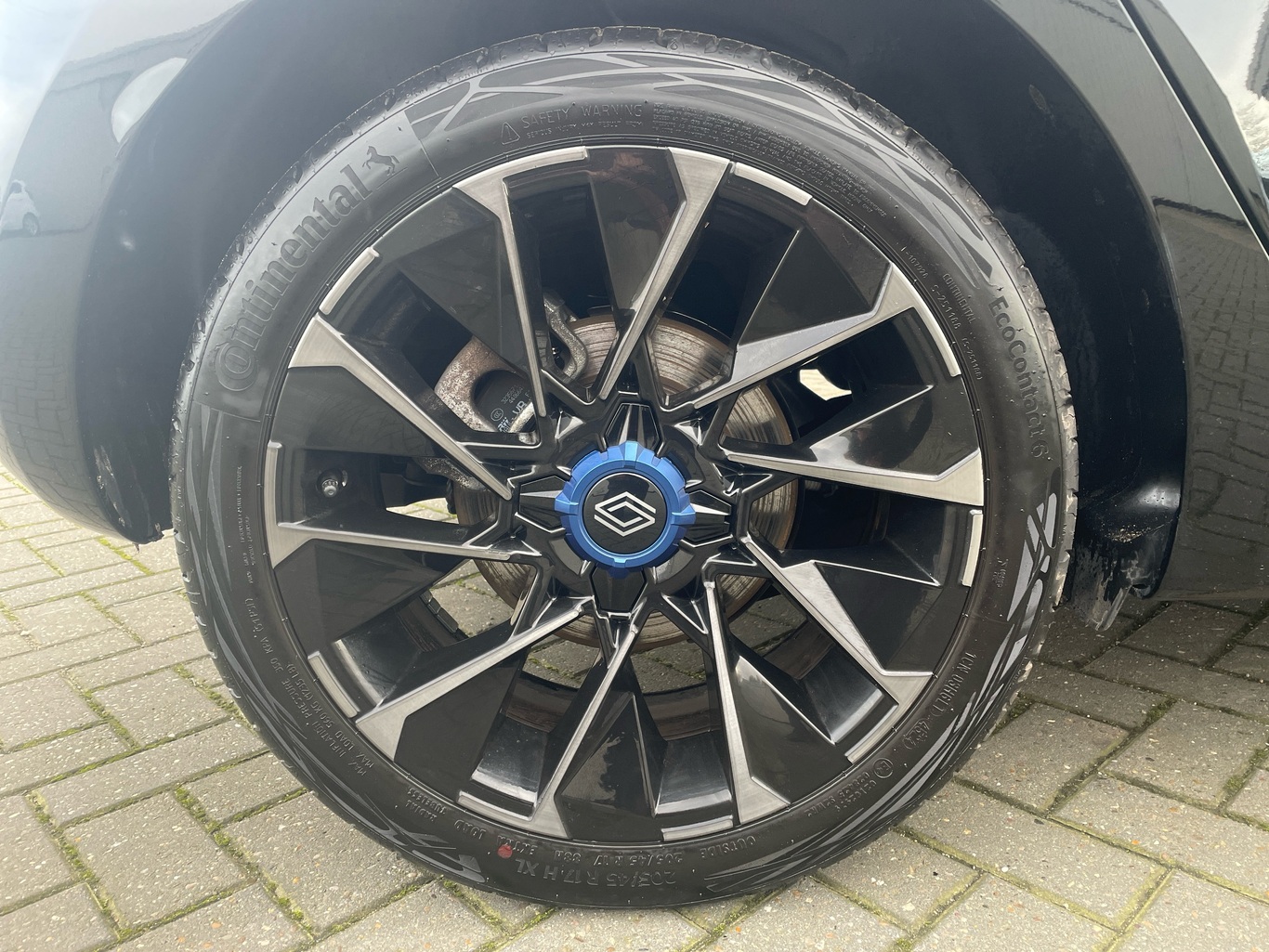 - Top grain synthetic leather steering wheel with blue stitching