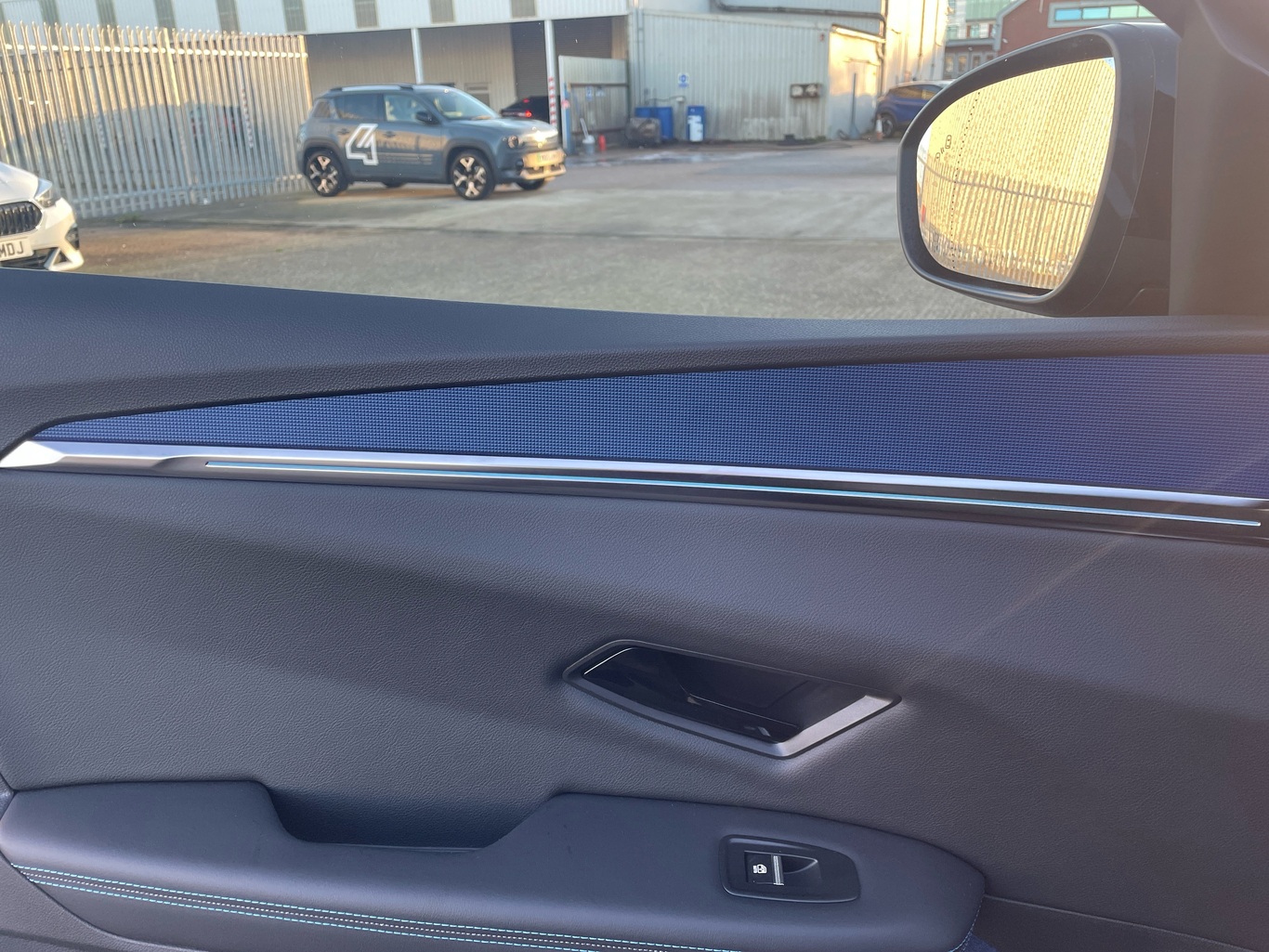 - Blue inserts in door panel